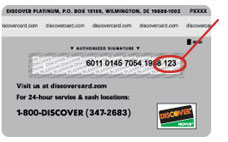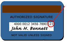 A three digit non-embossed number on the back of the card printed within the signature panel after the account number. |