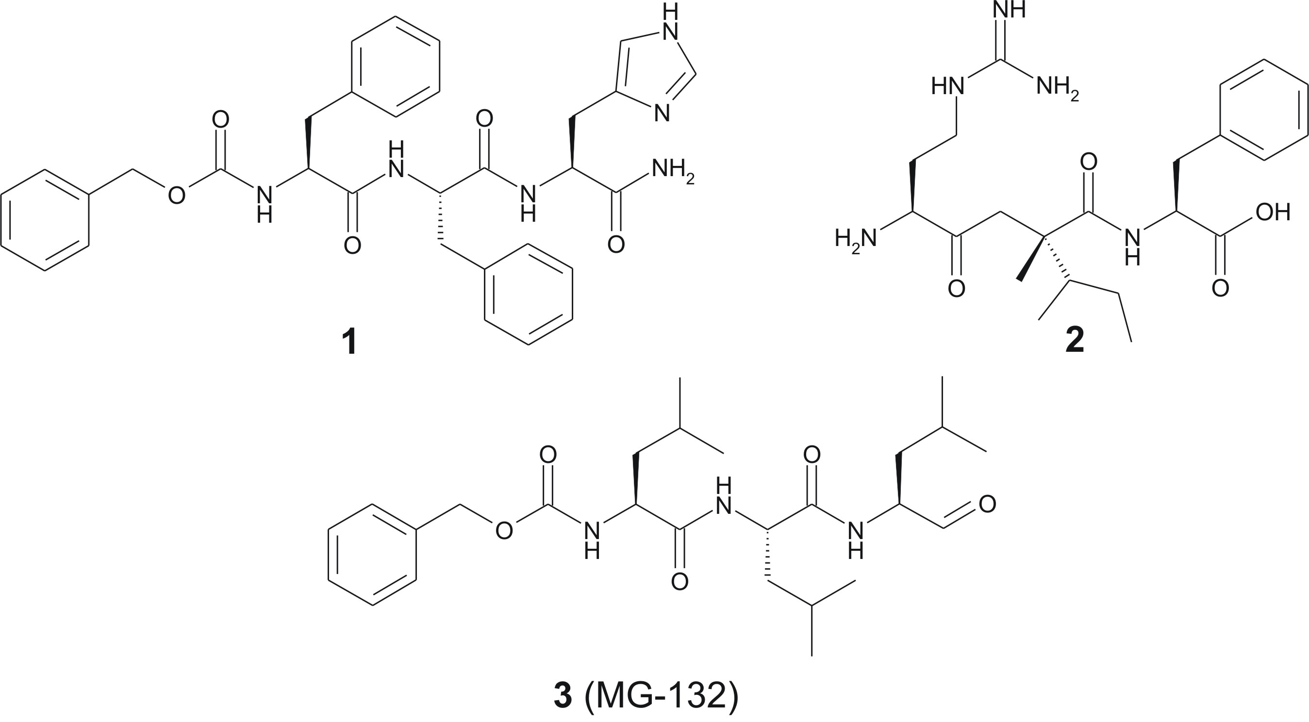 Tripeptides with C-terminal aldehyde group are of special interest. Compound 3 (Mg- 132) is a potent and selective inhibitor of 20S proteasome, which is often used as a reference in biomedical studies. The results of our studies on the successful combination of mutlicomponent reactions with enzymatic transformations to the synthesis of bioactive tripeptide mimetics, will be presented [2,3,4]. [1] K. Faber. Biotransformations in Organic Chemistry - A Textbook. Springer-Verlag, Berlin, 5th edition, 2004. [2] Szymanski, W., Ostaszewski, R.; Tetrahedron, 17, 2667-2671, 2006. [3] Mroczkiewicz M., Ostaszewski R., Tetrahedron, 65, 4025-4034, 2009. [4] Mroczkiewicz M.,Winkler K.,Nowis D.,Placha G.,Golab G.,Ostaszewski R., J. Med. Chem., 53, 1509–1518, 2010. |
