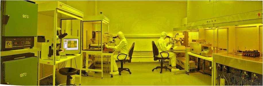 1. Instytut Technologii Elektronowej w Warszawie, koordynator projektu: Z szerokiej grupy szerokoprzerwowych związków półprzewodnikowych do zastosowań praktycznych wybrano trzy grupy materiałowe: ZnO i półprzewodniki pokrewne, GaN i materiały pokrewne oraz SiC. Prace Projektu koncentrują się na opracowaniu najbardziej krytycznych elementów technologii wytwarzania przyrządów półprzewodnikowych wykonywanych w oparciu o te materiały: domieszkowaniu na typ p, wytwarzaniu warstw buforowych dla heteroepitaksji MBE, stabilnych termicznie systemach metalizacji dla technologii kontaktów omowych i montażu typu flip-chip.warstwach izolacyjnych o dużej stałej dielektrycznej dla celów bramki sterującej i powłok pasywacyjnych, oraz procesach strukturyzacji 3D. Struktury planarne na bazie ZnO dla DEL 385 nm oraz dla fotonicznych czujników gazu wytwarzane będą przy użyciu technik wysokopróżniowego wysokotemperaturowego reaktywnego rozpylania katodowego, zaś struktury tranzystorowe HEMT AlGaN/ GaN techniką wzrostu epitaksjalnego MBE. W części dotyczącej przyrządów półprzewodnikowych z SiC bazować będziemy na materiałach komercyjnych - opracowanych w ramach PBZ-SiC lub oferowanych przez wytwórców światowych. To samo podejście przyjmujemy w odniesieniu do struktur DEL na bazie GaN - planujemy wykonanie na zamówienie zaprojektowanych struktur planarnych, a następnie poddanie ich opracowanym w projekcie operacjom strukturyzacji i funkcjonalizacji oraz testom funkcjonalnym i niezawodnościowym. Infrastruktura badawcza wykorzystywana przy realizacji projektu: Rys. 2. Laboratorium technologiczne.