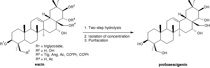 Preparation of protoaescigenin from escin. |
