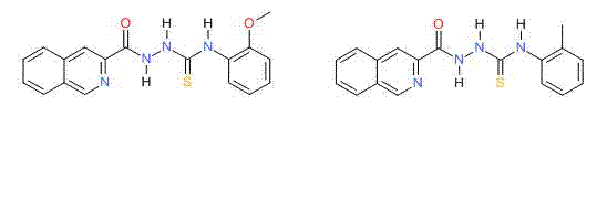 During the past two decades, the frequency of invasive and systemic fungal infections has increased dramatically due mainly to Candida species among which Candida albicans is the most dreadful human pathogen.([i]) Although several antifungal agents such as amphotericin B and the azoles are available, the limitations of current antifungal drugs, increased incidence of systemic fungal infections, and rapid development of drug resistance have highlighted the need for the discovery of new antifungals, preferably with novel modes of action.([ii]) In the course of our search for prototype antifungal agents from class of thiosemicarbazide derivatives, we identified two isoquinoline-thiosemicarbazides (see Fig.) as promising leads for design of novel small-molecule antifungal agents. The compounds showed inhibitory activity against opportunistic pathogens C. albicans with MIC range of 25-50 µg/mL. More importantly, ortho-methyl derivative displayed antifungal activity at non-cytotoxic concentrations in mammalian cells. Based on docking and molecular modeling studies it was proposed that possible target for antifungal thiosemicarbazide-based compounds is N-myristoyltransferase and ligand recognition process is connected with both structural and electronic parameters such as dipole moment and the highest occupied molecular orbital energy. [i] Giraud F, Guillon R, Logé C, Pagniez F, Picot C, Le Borgne M, Le Pape P. Bioorg Med Chem Letters 19 (2009) 301-304. [ii] Babu KS, Li X-C, Jacob MR, Zhang O, Khan SI, Ferreira D, Clark AM. J Med Chem, 49 (2006) 7877-7886 and references therein