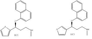 Duloxetine hydrochloride (DX) [(+)-(S)-N-Methyl- 3-(naphthalen-1-yloxy)-3-(thiophen-2-yl) ] propan-1-amine hydrochloride] is an antidepressive drug effective for mood disorders and also the stress urinary incontinence. Duloxetine is a serotonin-norepinephrine reuptake inhibitor (SNRI). The serotonin and norepinephrine are neurotransmitters responsible for connection between nerve cells. Besides effectiveness in treatment of mental disorders these hormones are involved in process of pain reduction. Duloxetine increases the level of neurotransmitters in the brain, which affect course of anxiety, diabetic neuropathic pain and attention deficit hyperactivity disorder (ADHD).