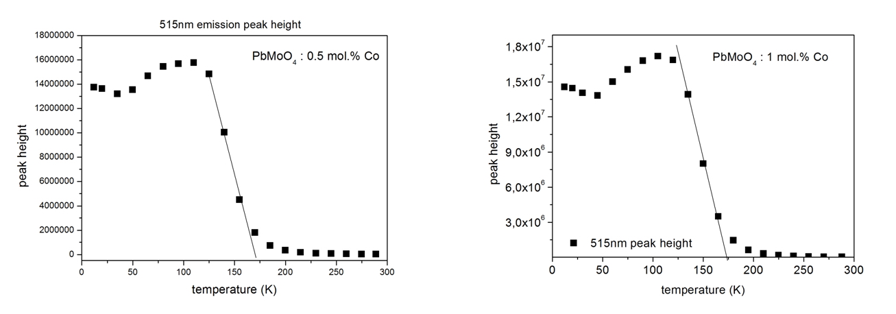 We observed blue PL emission due to electronic transitions within the isolated [MoO4] tetrahedron groups and green emission due to extrinsic transitions caused by the defects or impurities. Temperature dependence of PL spectrum shows ananomaly in a range of 100-200 K, indicating a structural phase transition at about 175 K. |