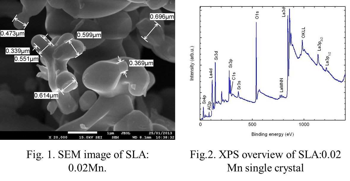 Table 1. Magnetic measurements results. Electronic structure measurements showed a decomposition of the surface of the nanocrystals SLA. Magnetic measurements confirmed the presence of Mn4+ in the measured doped samples what is essential for spectroscopic properties of such crystals.