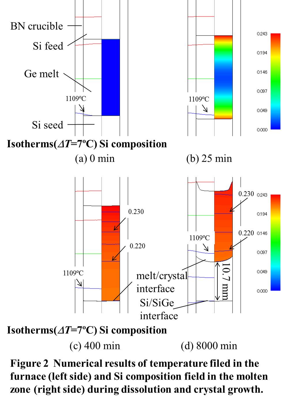 Numerical simulations of heat and mass transfer in traveling liquidus-zone crystal growth process of SiGe under microgravity |