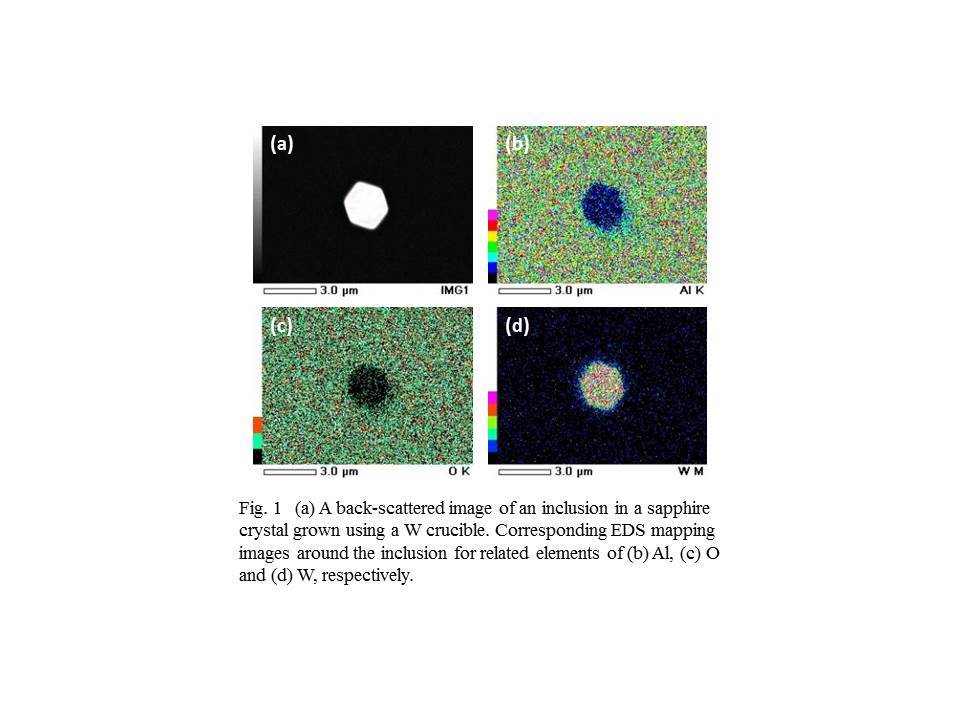 With regard to microscale defects in sapphire crystals, many research studies reporting small bubbles of the size of 2 - 10 μm in EFG- [1] or CZ-grown crystals [2] have been published. However, there have been few reports about inclusions in sapphire crystals. Danko et al. reported hexagonal-shaped Al3O4 inclusions in sapphire crystals grown by the horizontally oriented crystallization method [3]. Recently, we reported the vertical Bridgman (VB) technique for growing c-axis sapphire crystal using a tungsten (W) or a molybdenum (Mo) crucible [4]. This paper reports the morphology and formation mechanism of inclusions observed in VB-grown sapphire crystals. |