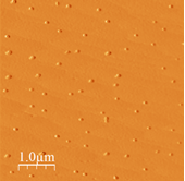 Figure3: AFM image of surface of GaAs QDs from the superlattice sample Fig 3 shows that the surface of GaAs QDs for this sample have high uniformity (99±3 nm) and areal density of 108 cm-2 .