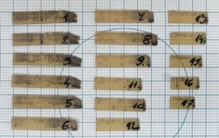 Fig. 2. Stripes sliced from the HVPE-GaN boule with various exposed surfaces: a) (20-21); b) (10-10); c) (11-20); grid line 1 mm.