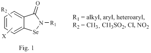 | Ebselen and its organoselenium analogues are well known as active immunostimulants, inhibitors of enzymes, antioxidants, anti-inflammatory, antitumor, antiviral and antimicrobial agents1-6. In this work we report synthesis and results of biological evaluation of a series of C substituted ebselen analogues (Fig.1). ![]() The general strategy for the synthesis of C-substituted benzisoselenazol-3(2H)-ones is based on the conversion of commercially available 5 substituted 2-chlorobenzoic acids or 2-aminobenzoic acids into 5-substituted 2 (chloroseleno)benzoyl chlorides and finally on the tandem selenenylation-acylation of primary amines with these reagents. Prepared compounds were tested towards inhibition of the viability of gram positive (Bacillus subtilis), gram negative (Escherichia coli) bacteria and pathogenic fungus Candida albicans. The preliminary results indicate the promising, anti-bacterial and anti-mycotic activity of tested compounds in low concentrations. References: 1. Mugesh G. et al., Chem. Rev., 101, 2125 (2001),2. Mugesh G. et al., Chem. Soc. Rev., 29, 347 (2000), 3. Nogueira CW. et al., Arch Toxicol.,11, 1313 (2011), 4. Wojtowicz H. et al., Il Farmaco, 58(12), 1235 (2003), 5. Wojtowicz H. et al., Il Farmaco, 59(11), 863 (2004), 6. Piętka-Ottlik M., et al., Chem Pharm Bull, 56.1423 (2008). This work was financially supported by the National Science Centre (NCN) under grant no. UMO-2013/09/D/ST5/03814. |